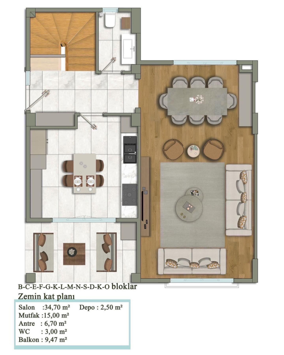 B/C/E/F/G/K/L BLOK ZEMİN KAT PLANI