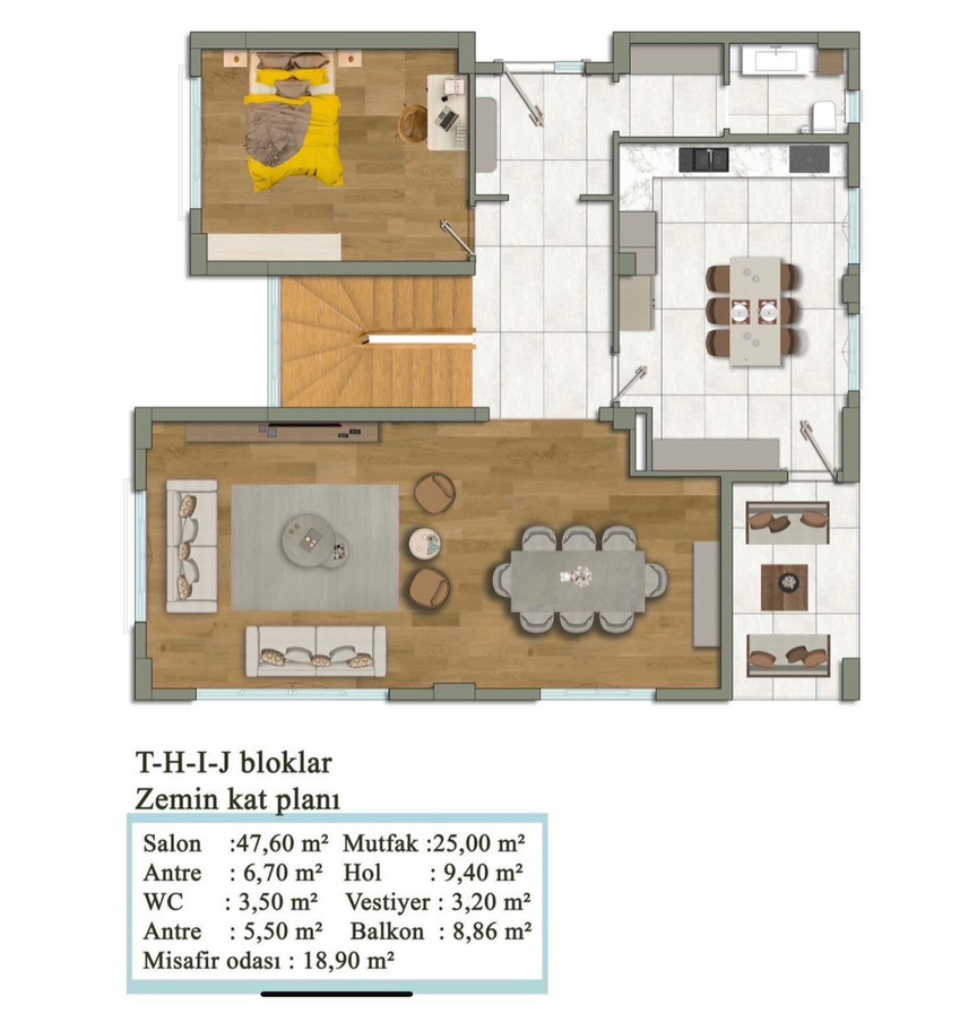 T/H/I/J BLOK ZEMİN KAT PLANI